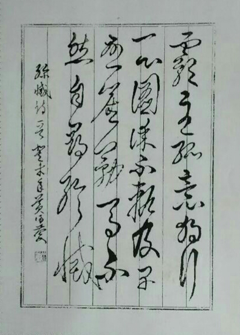 选自作品集书法小品,章法气势磅礴,遒劲雄健,酣畅淋漓,笔走龙蛇。自作诗《殄灭》霸主孤意独行,一心图谋不轨。及早悬崖勒马,不然自寻殄灭。犯我中华者,虽远必诛!